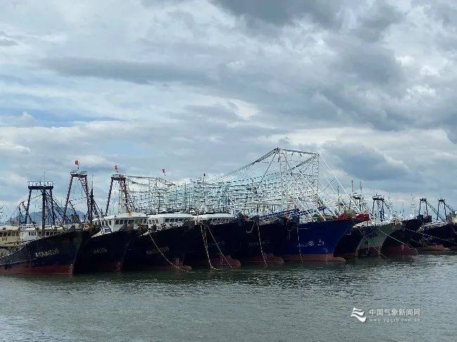 图为7月1日,茂名市电白博贺港渔船收到台风预警信息后,加强在港渔船的安全防范,有序在港避风。