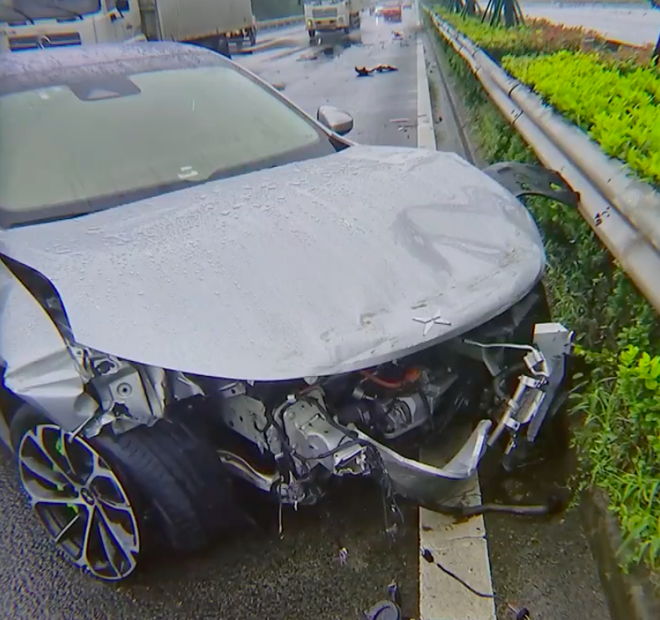 据1818黄金眼报道,在宁波的杨先生6月20日开一辆小鹏P7汽车送孩子上学后,回程时在宁波慈溪的长邱线上遇到下雨天气,路面有积水,汽车出现打滑的现象后,杨先生踩了刹车,结果汽车与护栏发生碰撞,汽车经过多次旋转并在二次撞击之后才停下来。