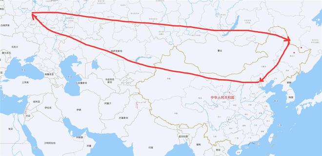从黑河绕行北京、莫斯科到布拉戈维申斯克的路线