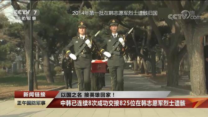 从2014年至2021年连续8年,已有八批共825位在韩中国人民志愿军烈士的遗骸回到祖国,并安葬于沈阳抗美援朝烈士陵园。