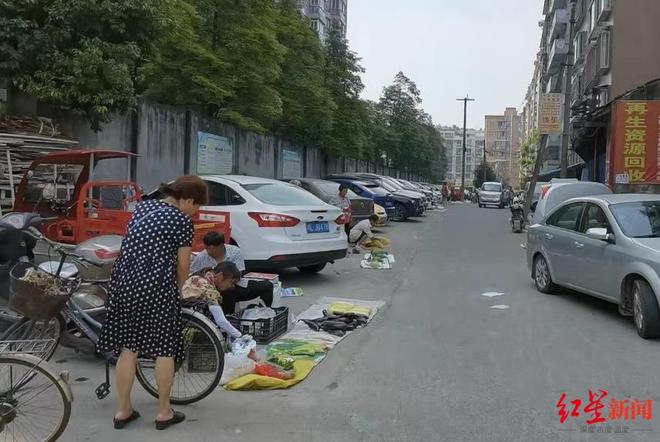 7月5日,红星新闻记者辗转找到了视频中的事发地点,位于乐山通江街道万人小区一处自建还房区域的通道,不属于农贸市场,通道两侧有很多农民摆摊买菜,菜品看上去比较新鲜,人来人往,十分热闹。