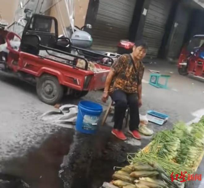 被泼机油的婆婆也在摆摊的人群中,并不显眼,不时有市民前来买菜,偶尔有人认出了她,“你就是昨天被泼了机油的婆婆吧?确实太让人气愤了!”