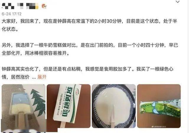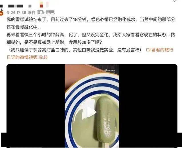 雪糕在31℃的室温下放置近1小时后,仍然没有完全融化 (图源:网传截图 极目新闻)