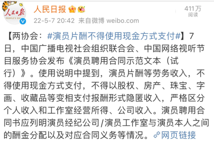 据@人民日报微博消息,7日,中国广播电视社会组织联合会、中国网络视听节目服务协会发布《演员聘用合同示范文本(试行)》。