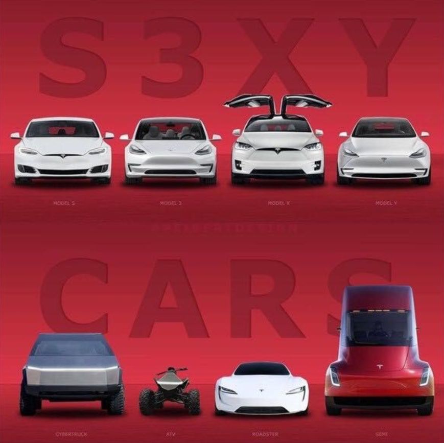 目前,特斯拉旗下的“SEXY CARS”矩阵已经形成,除了一款ATV车型,共拥有7款乘用车或货车,包括Model S/X/3/Y四款在售车型,以及Cybertruck(皮卡)、Roadster(跑车)、Semi(卡车)三款未售车型。