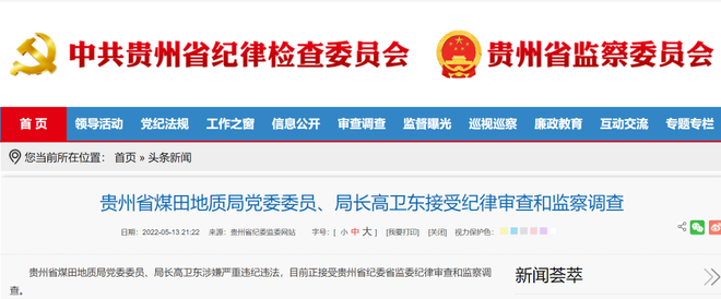 5月13日晚间,贵州省纪委监委网站消息:邓州人,原茅台集团原董事长高卫东涉嫌严重违纪违法被查。
