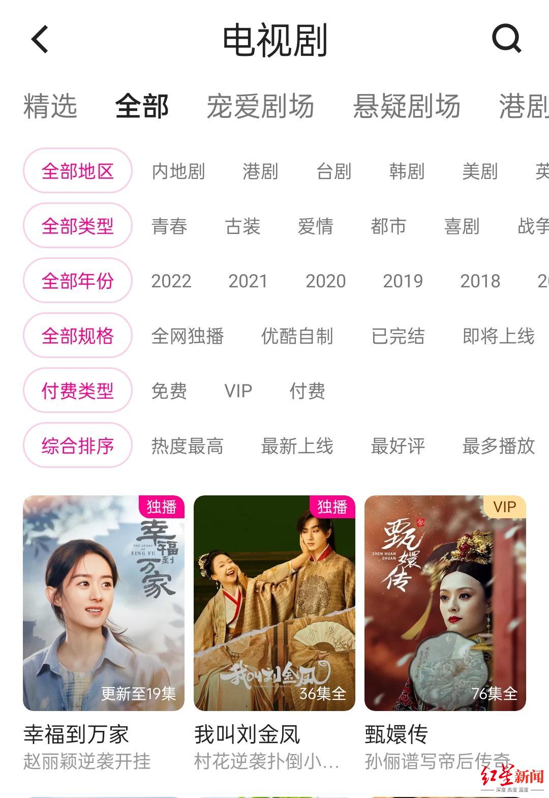 红星新闻记者注意到,以“我叫刘金凤”为关键词在优酷站内搜索,确实已经查无此剧。不过,在站内“电视剧”频道,依然能找到这部引起争议的剧集。