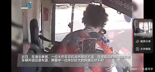 日前,湖北孝感一大巴司机高速上突然觉得身体不适,自己先把车量开进应急车道,车上大姐看到司机师傅不对劲儿,第一时间站出帮忙,果断一脚刹车阻挡大巴滑行,并拉下手刹,组织乘客救助司机,其他人迅速撤离并报警。