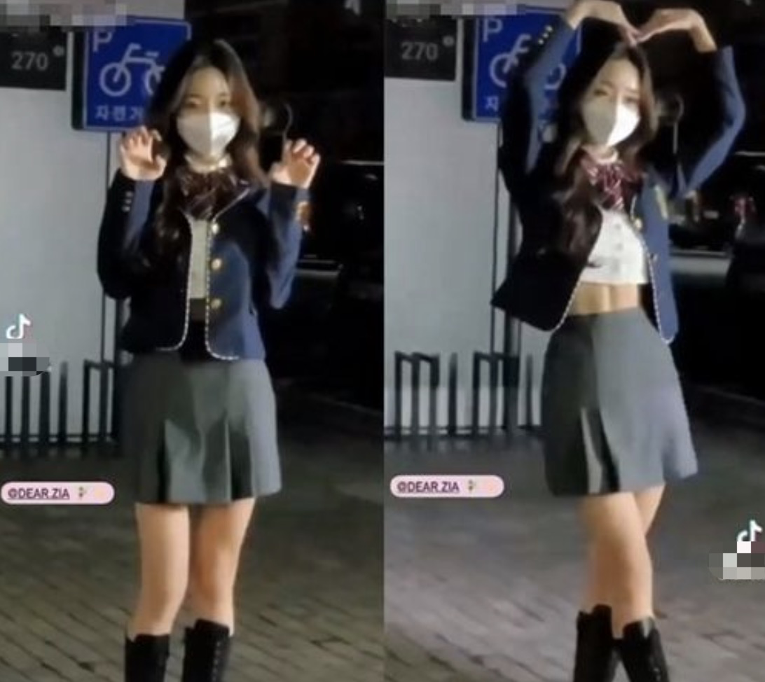 在录制《认识的哥哥》时,为了迎合节目主题,她穿着修改版的女生学校制服登场。里面的白色衬衫改短,露出了腹肌水蛇腰,很是辣眼睛,不少网友表示这对高中生起了很不好的示范。