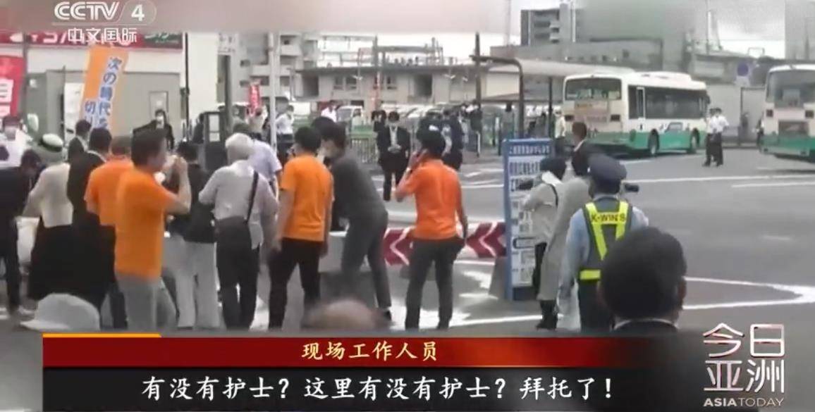7月10日,据“小央视频”:日本媒体公布了更多事发现场的视频,安倍遭枪击后,工作人员大喊求助路人:有医生护士吗?