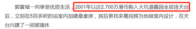 此前曾有媒体报道,这栋豪宅是2001年郭富城花费2700万港币(约2237万人民币)购入的,现在被传已经升值至3个亿。