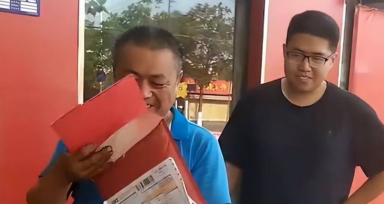 父亲亲手拆开了录取通知书,笑得合不拢嘴,并向大家展示。