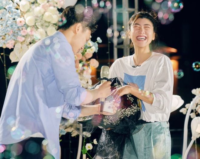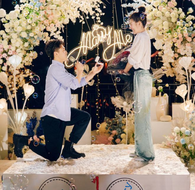 在二人分享的照片中,王心迪拿钻戒单膝下跪向徐梦桃求婚,周围全是鲜花和泡泡,气氛十分浪漫。好了,以上就是本期的全部内容了,下期见。