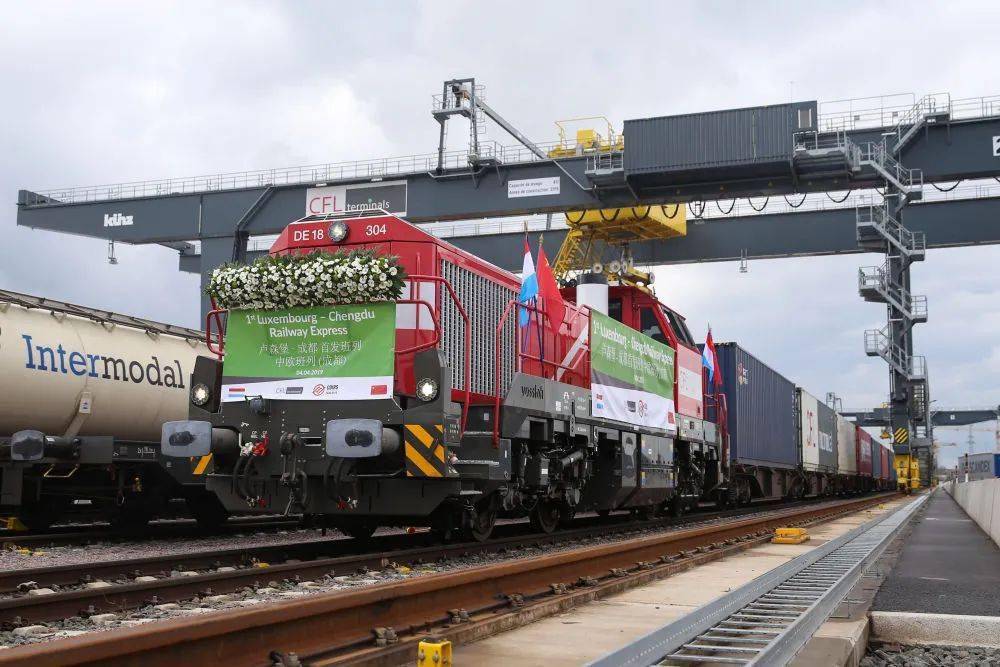 ▲ 2019年4月4日,首趟卢森堡至成都中欧班列在卢森堡迪德朗日铁路场站准备出发。班列途经德国、波兰、白俄罗斯、俄罗斯、哈萨克斯坦等国,由中国新疆阿拉山口口岸入境。