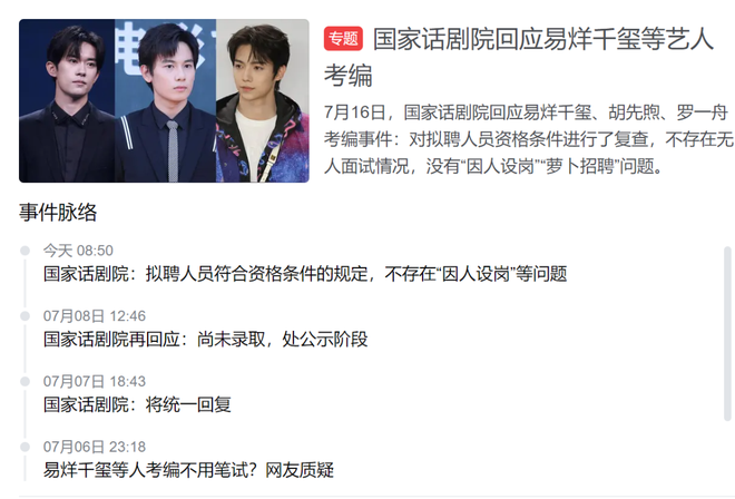 有人说,中国国家话剧院已经紧急展开补录,如果属实,这种做法是犯法的,是必须一查到底的。还有人针对这次事件,罗列出了一大堆问题,这些问题包括考编问题,易烊千玺中考问题,还有就是中国新闻周刊以“小镇做题家”贬低普通人的问题。