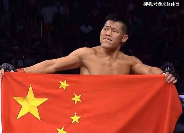 赛后,李景亮激动不已,他爬上八角笼,向全场展示五星红旗。
