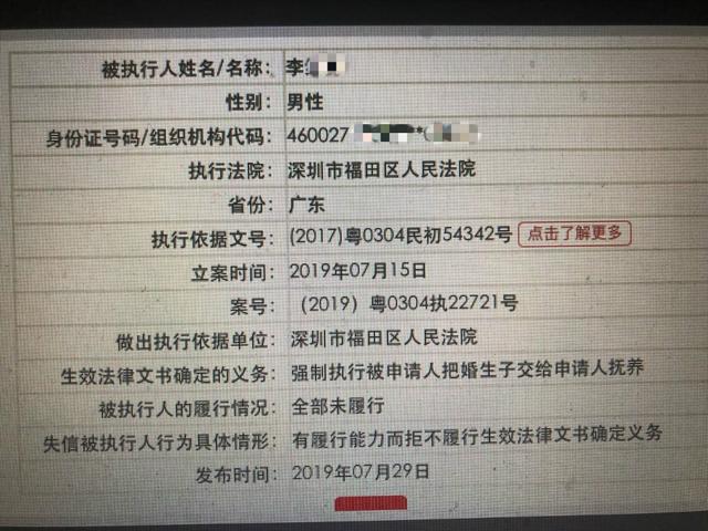 黄丽丈夫李某因涉嫌拒不履行相关案件判决,3月被深圳福田警方刑拘,后来又被取保候审。12月30日,李某犯拒不执行判决、裁定罪,被福田区法院判处有期徒刑一年。
