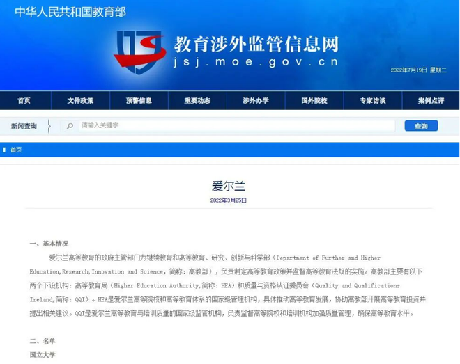 首先,在我们教育部涉外监管信息网查询,经爱尔兰高等教育政府主管部门认可的正规大学有25所,其中并没有爱尔兰欧洲大学。