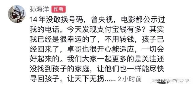 即便是心愿如此,仍有很多网友质疑孙海洋收网友的钱。其实这个过程是孙海洋不能控制的,不能为了此事选择放弃用了14年的手机号,这个手机号的重要程度可想而知。