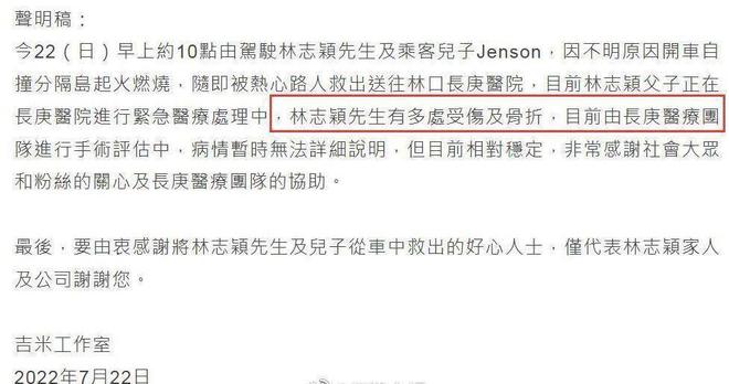 月22日,知名男星林志颖意外发生车祸,引发全网关注。事情发生后,好在有热心群众把林志颖父子拖了出来,车子五秒后自燃,可谓是相当危险。到了下午,林志颖弟弟林志鑫接受了采访,并透露哥哥的伤情比较稳定,家人正在医院陪伴他。