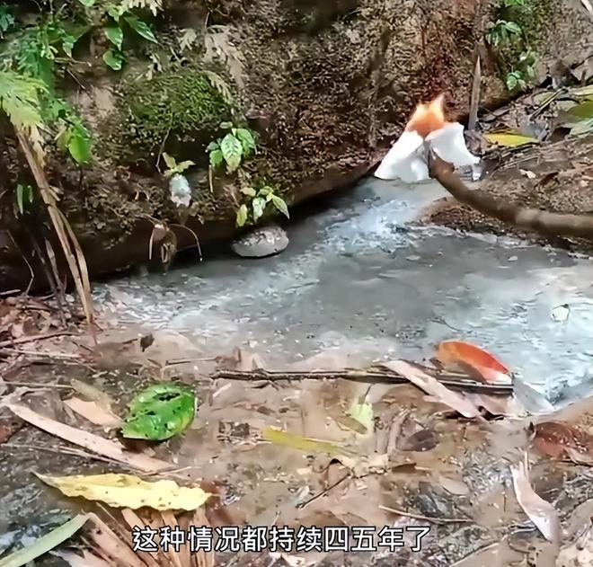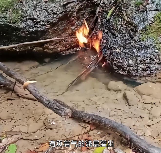 当地的村民表示,有气体从水里冒出来,水也一直咕嘟咕嘟冒泡,出于好奇,村民就用张纸点燃,伸到气泡那里,没想到居然会燃烧起来!据了解,这种现象有4、5年了,除了水中的气体能被点燃还有地火。