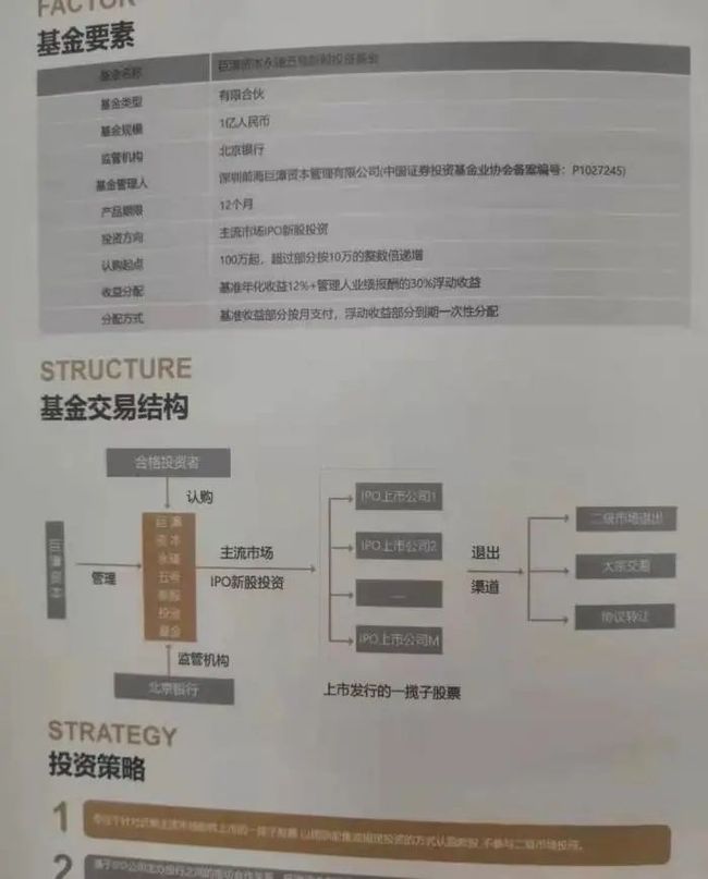 尽管在中基协的备案中,巨漳资本私募基金管理人类型分类为股权类,但巨漳资本对外却是以高收益率做宣传并募资出境打新。