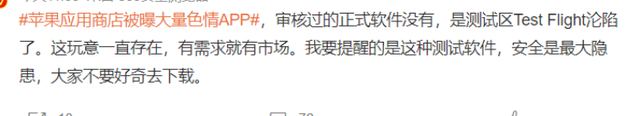 也有网友指出,这是测试区Test Flight沦陷了,并提醒这种测试软件,安全是最大隐患,大家不要好奇去下载。