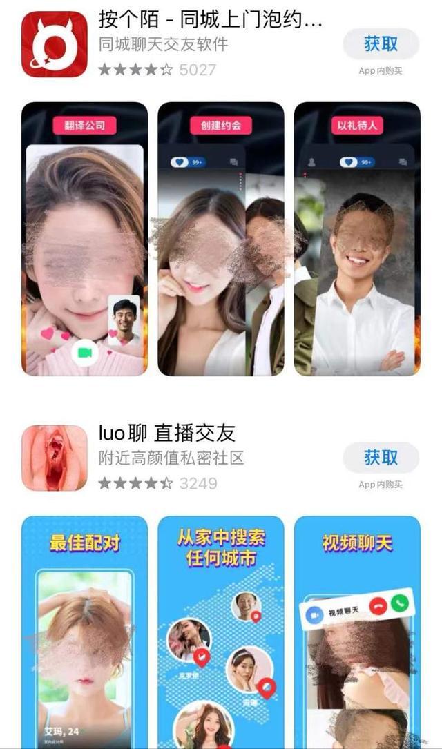 但却发现带有很强色情暗示的APP仍然可下载,如“luo聊”“按个陌”等↓