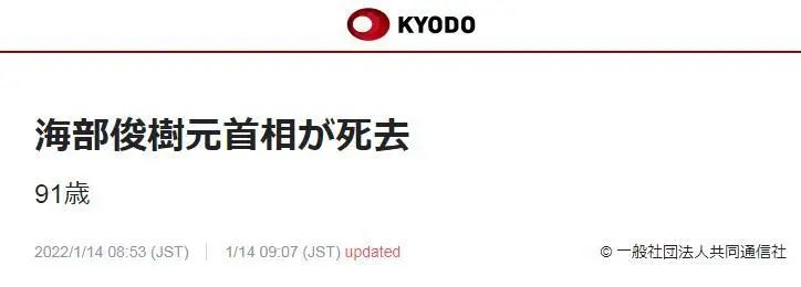 日本共同社14日消息,消息人士透露,日本前首相海部俊树9日去世,终年91岁。
