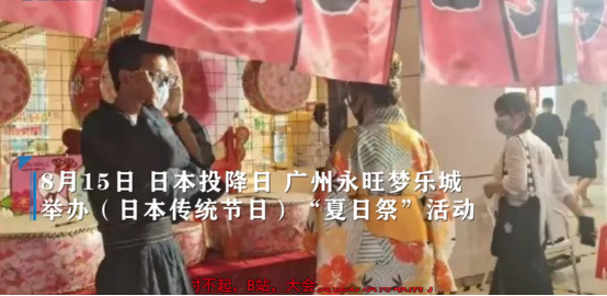 2019年,B站一位上海博主发布了自己2018年在上海某商场穿和服逛夏日祭现场的视频,被部分网友批评劝阻。