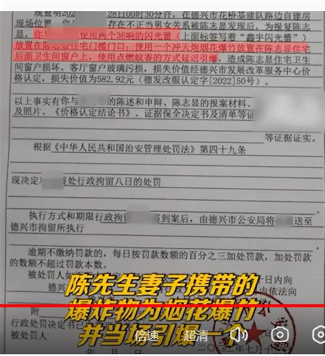没想到后来,女方为了报复陈先生,竟和情夫一起带着爆竹上门炸他人的房屋。对婚姻不忠,还骂丈夫是“畜生”,甚至带着情夫上门炸家,真是将厚颜无耻提升到了新的高度。