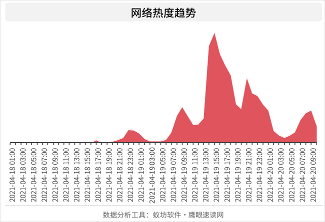 4月18日,张X医生在知乎发文揭露肿瘤治疗黑幕;随后,5:52,AI财经社最先在腾讯新闻客户端发文报道此事;但是暂时没有引起网民关注。直到16时左右,大量新闻平台和自媒体,包括搜狐新闻、腾讯新闻、网易新闻、腾讯看点、一点资讯、大鱼号、财富号、58同镇开始广泛加入到事件的传播报道中,从舆情监测软件鹰眼速读网的分析来看,相关事件的热度在网络中仍处于初始较低水平。
