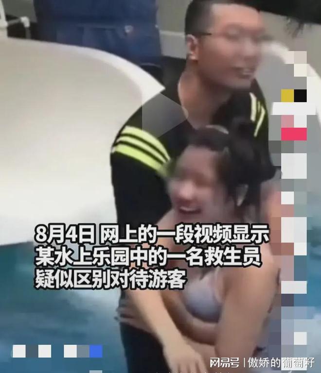 近日,辽宁鞍山某水上乐园的救生员,在滑梯下对游客进行了颜值区别对待,看到妙龄少女和颜值高