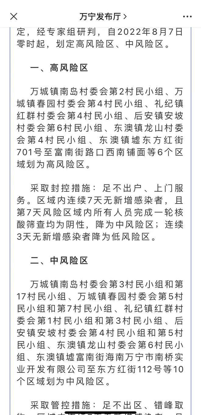 8月6日,海南万宁市也划定了6个高风险区、10个中风险区。