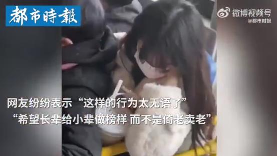 朋友当时也没有座位,看到大妈的行为觉得很无语,就拍了下来。