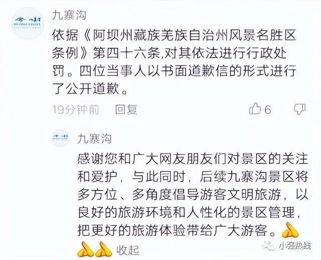 同时,景区在官方社交账号回应,已对当事游客行政处罚,四人以书面道歉信的形式进行了公开道歉。