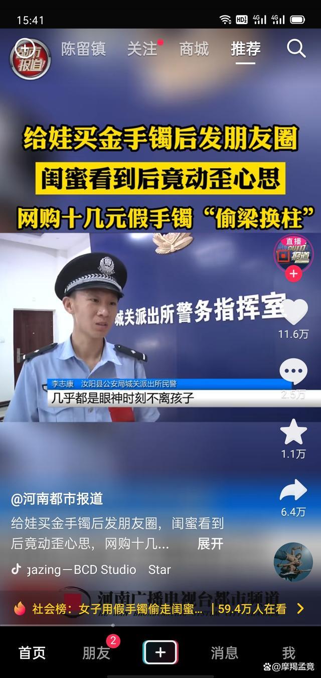 近日,来自河南洛阳的一女子用其20元从网上买来的假手镯,换走闺蜜宝宝手上的金手镯。据悉,金手镯是宝妈在宝宝满月的时候,在金店花了4000多元购买的,当时还发了朋友圈。一次在帮宝宝换衣服的时候,宝妈发现金手镯明显比之前轻了很多,便拿去金店验证真假,才发现被闺蜜换走了。