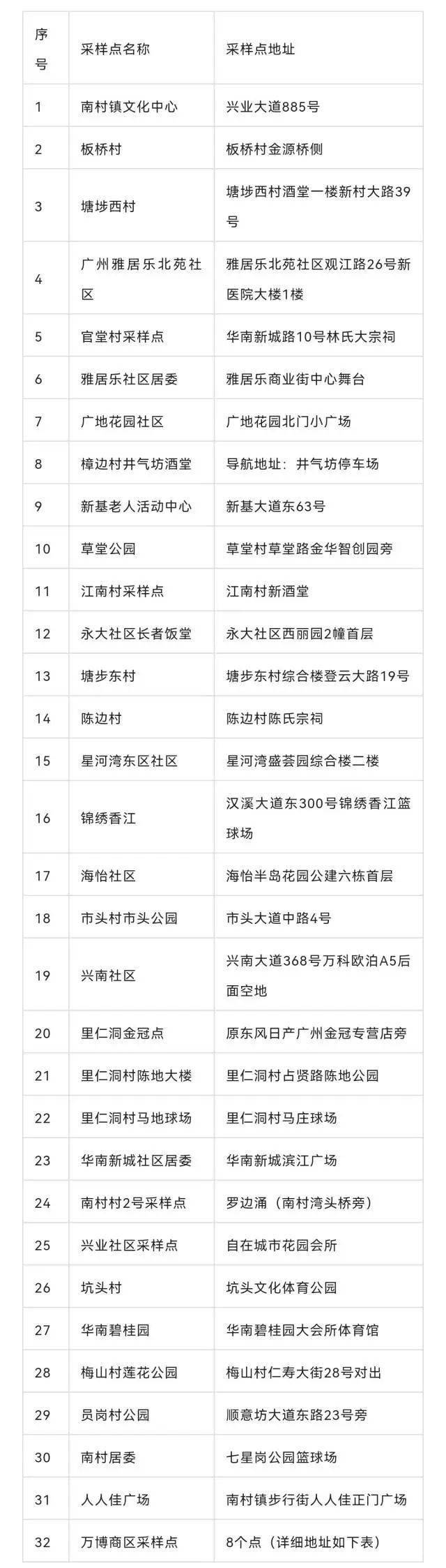 万博商区采样点详细地址。图源| 广州番禺发布