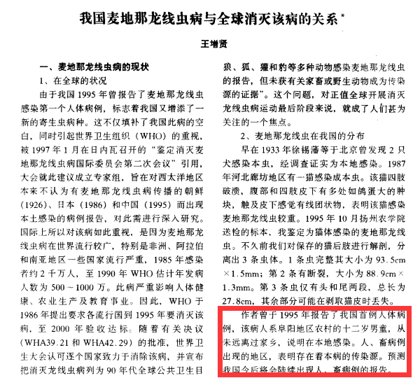其中最常见的是能寄生于人体和动物的麦地那龙线虫(以下简称龙线虫),一般长达60~120厘米,前面视频里那个状如面条的虫子就是这种虫。因其相较于其它寄生虫而言,体积巨大,且危害人数广,它也被称作寄生虫中的“王者”。