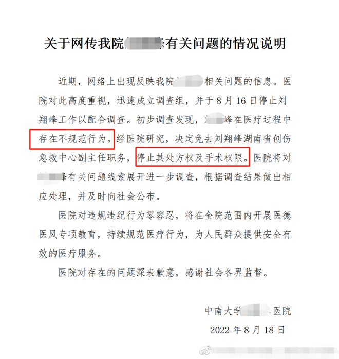 但就在昨天,该医院发布了情况说明,经过初步调查发现,这名医生在医疗过程中存在不规范行为。