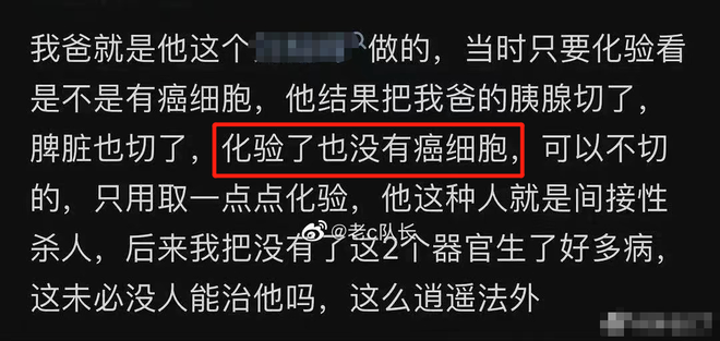 常规角度下,如果真如网传所说,这名医生胡乱行医,没有肿瘤说有,那么从检验科、手术科、药科 、相关经受的医生医护人员,应该不会没有一个人都不知道这种行为。