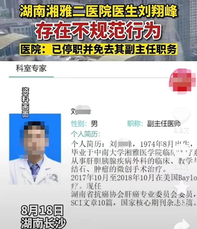事发几天前,有人在网上爆料长沙某三甲医院的一名副主任医师作风有问题。