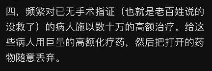 还经常用专业知识欺骗、坑害病人,没病变有病,小病说成大病,普通手术说成癌症手术,从中不断榨取高额费用。