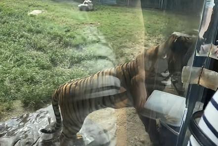 济南野生动物园老虎投喂口玻璃碎裂,游客:当时距离仅5厘米