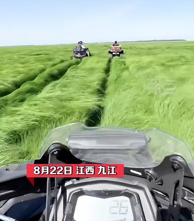 近日,受持续高温天气影响,鄱阳湖水位持续下降,面积缩小了3/4。 鄱阳湖湖底,形成一滩滩的水洼大片的绿草地,草长得很茂盛,有二三十厘米高,面积比以往都要大。到了这里像来到了一片草原,感觉很美。