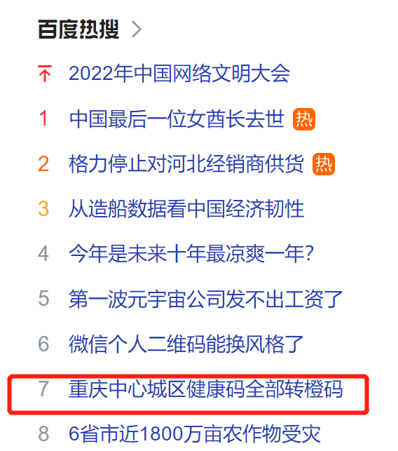 重庆中心城区健康码全部转橙码 登上百度热搜