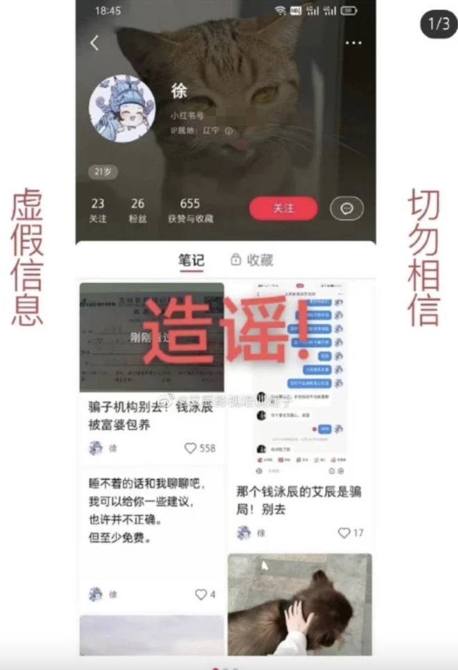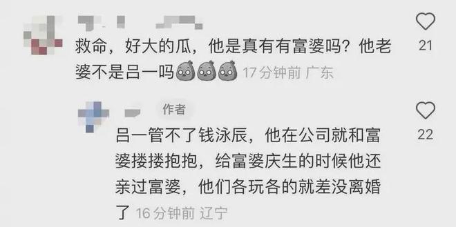 造谣者曾爆料吕一管不了钱泳辰,甚至说出“他们各玩各的就差没离婚了”的言论。