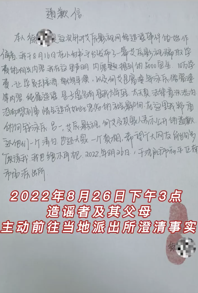 8月26日,演员钱泳辰发布艾辰事件造谣者公开道歉的视频。艾辰事件终于有了定论,纯粹是造谣!