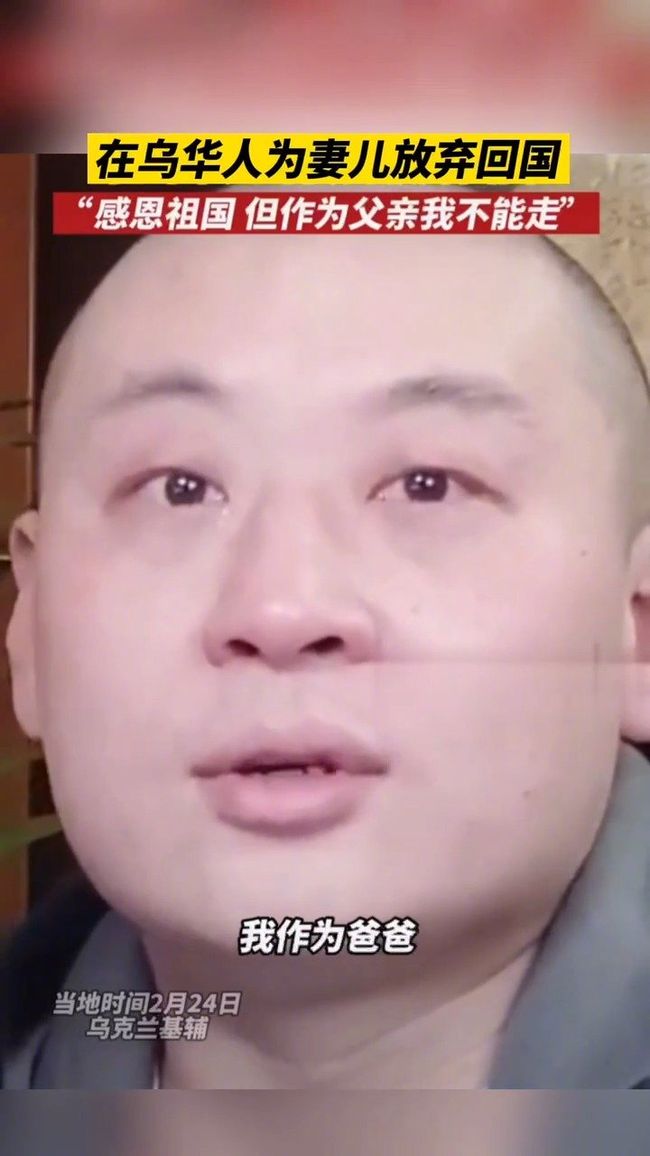 【#在乌华人为妻儿放弃回国#】盼平安!盼和平!当地时间2月2日4,乌克兰基辅一位在乌华人为妻儿放弃回国 :“感恩祖国,但作为男人,作为丈夫,作为父亲,我不能走”