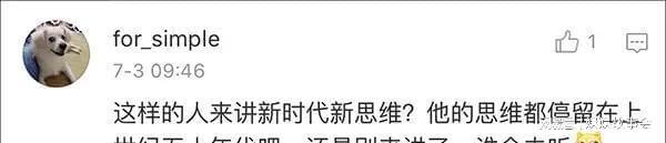 有网友评论说:这样的人,犹如井底之蛙,思维还停留在上世纪五六十年代,他来讲新时代新思维,简直就是极大的讽刺。